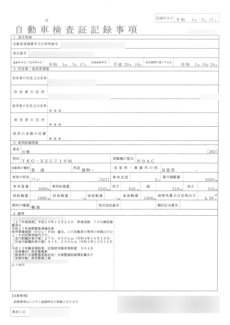 - 点検整備記録