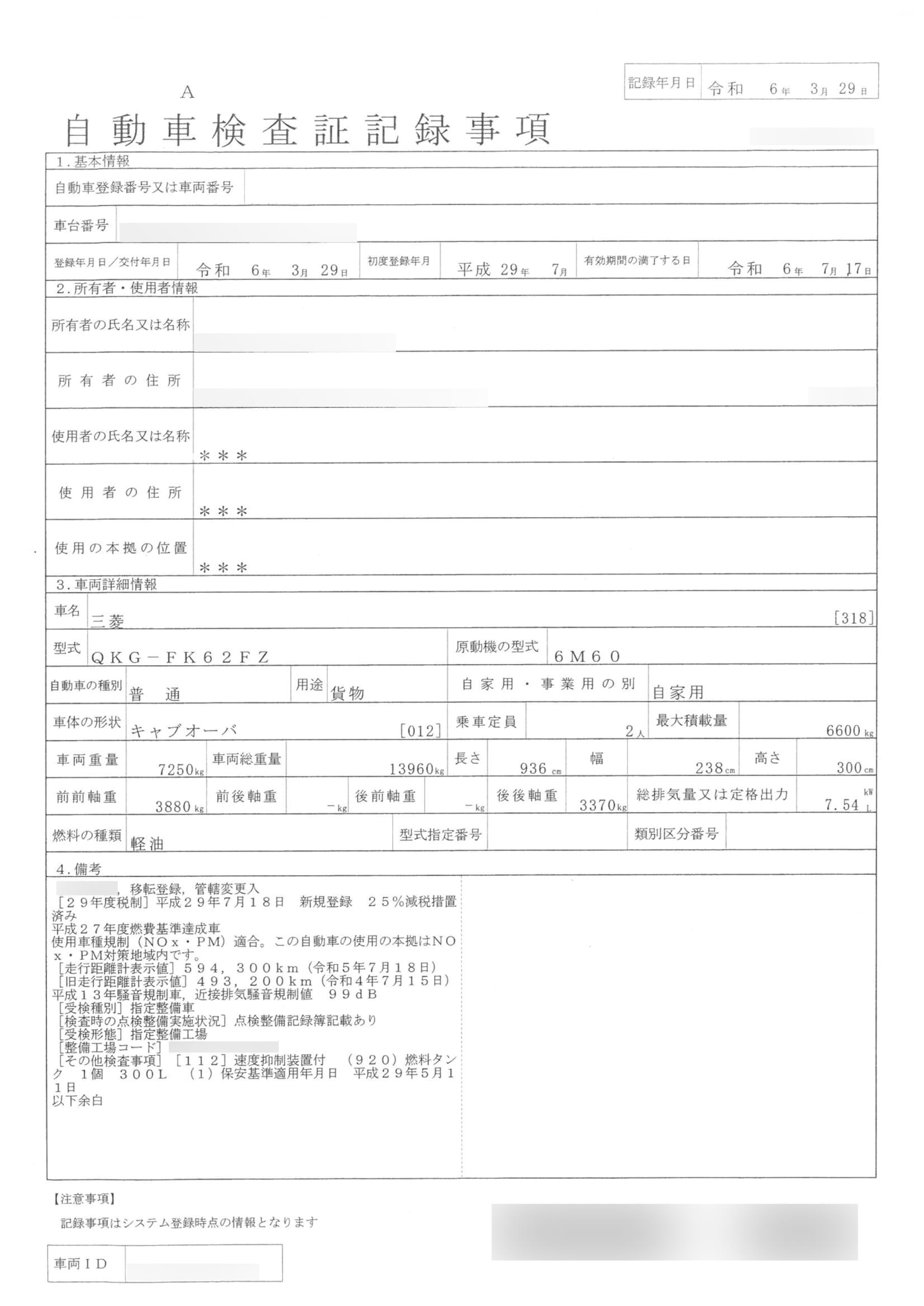 • 点検整備記録