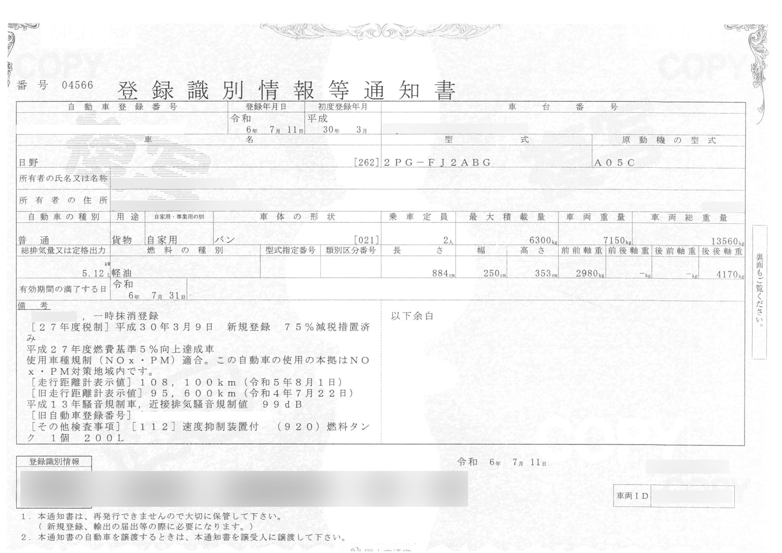 最大積載量:6300kg / 上物:日本フルハーフ(型式:DMY・シリアル№:W6HA744) /