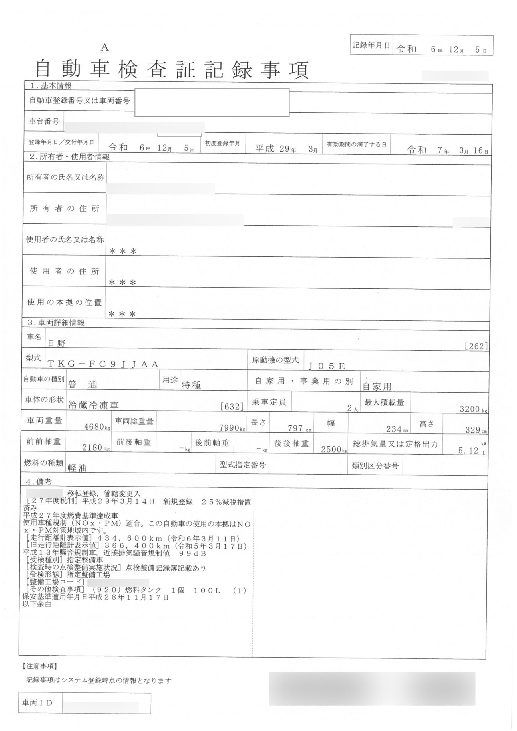 シリアル№:S71105308・箱内リモコン) / 床:アルミシマ板 / ラッシング 2段 / イモビライザー /