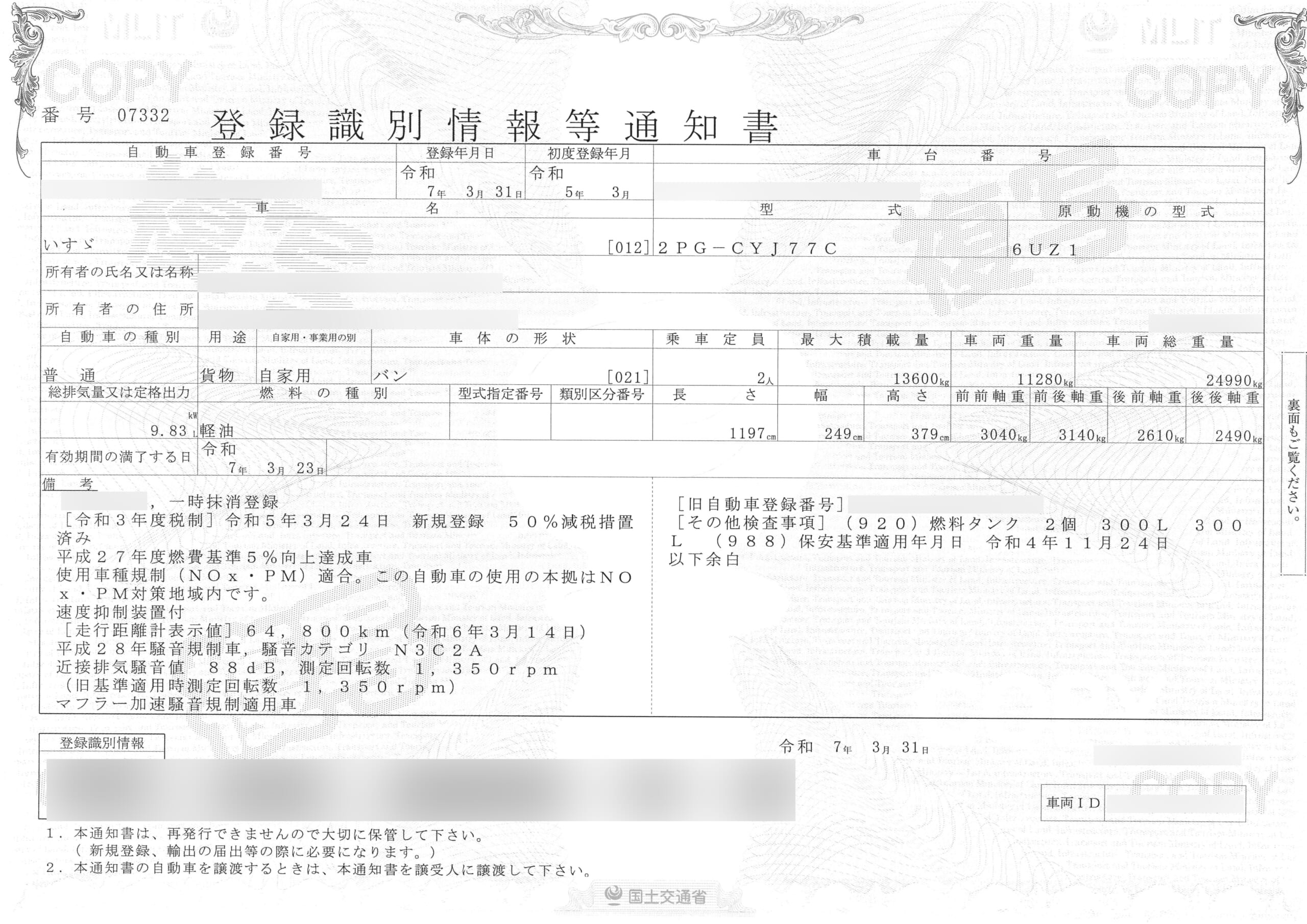 扉形状:観音 / サスペンション:リーフサス(F)・エアサス(R) / 燃料タンク:300L+300L / ターボ / 坂道発進補助 / PM装置