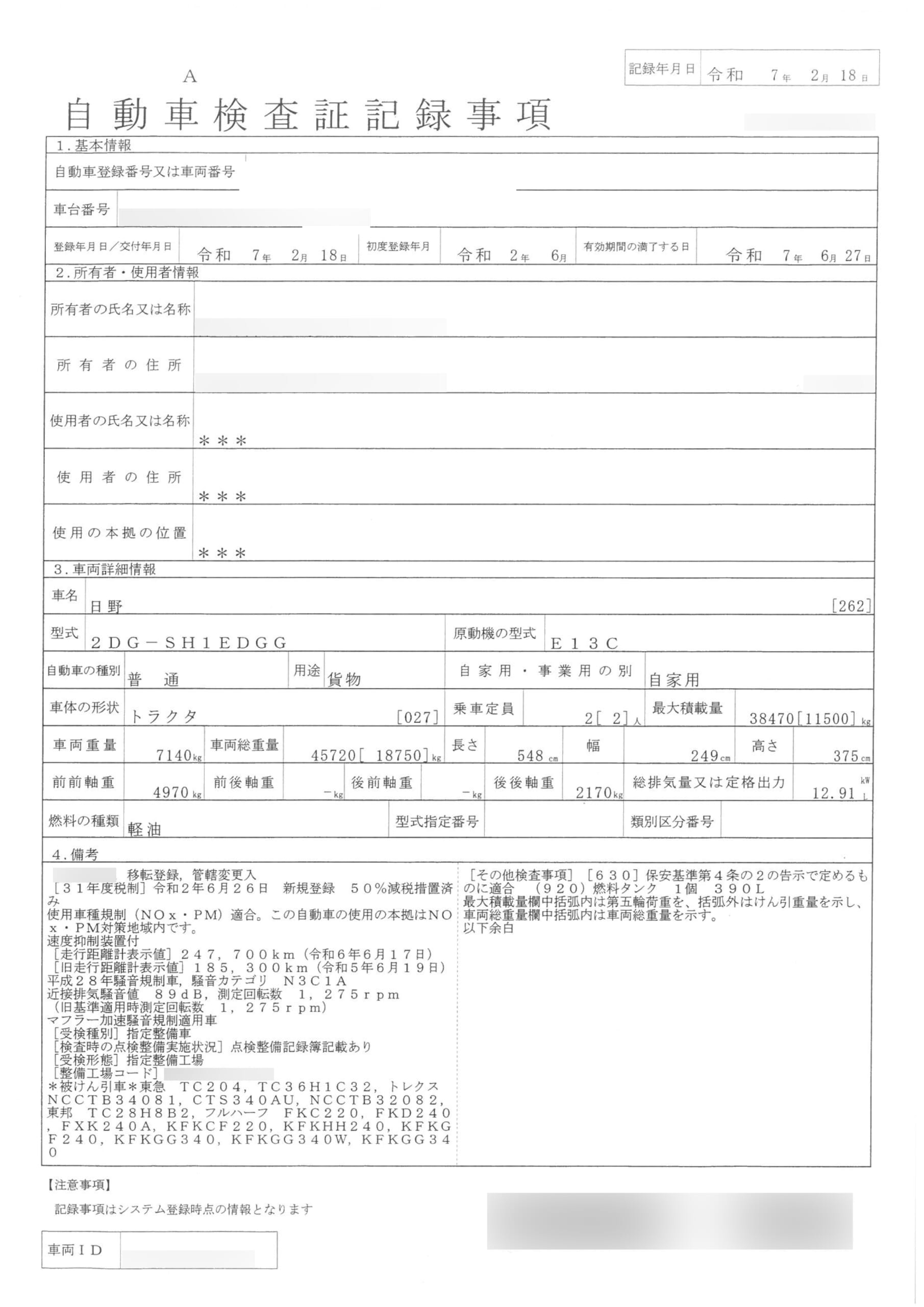 サスペンション:リーフサス(F)・エアサス(R) / 燃料タンク:390L / ターボ / 坂道発進補助 / PM装置