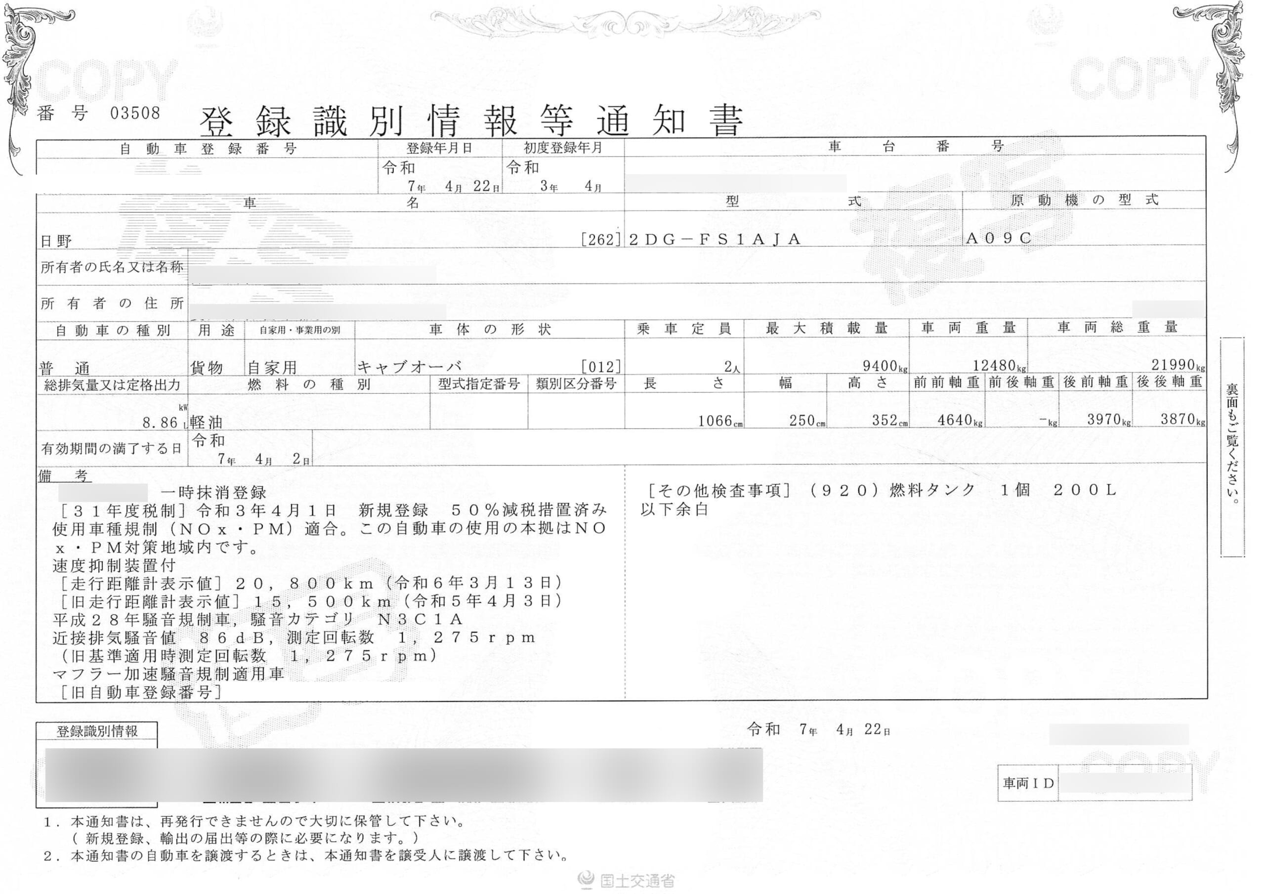サスペンション:リーフサス(F・R) / ターボ / 燃料タンク:200L / 坂道発進補助 /PM装置